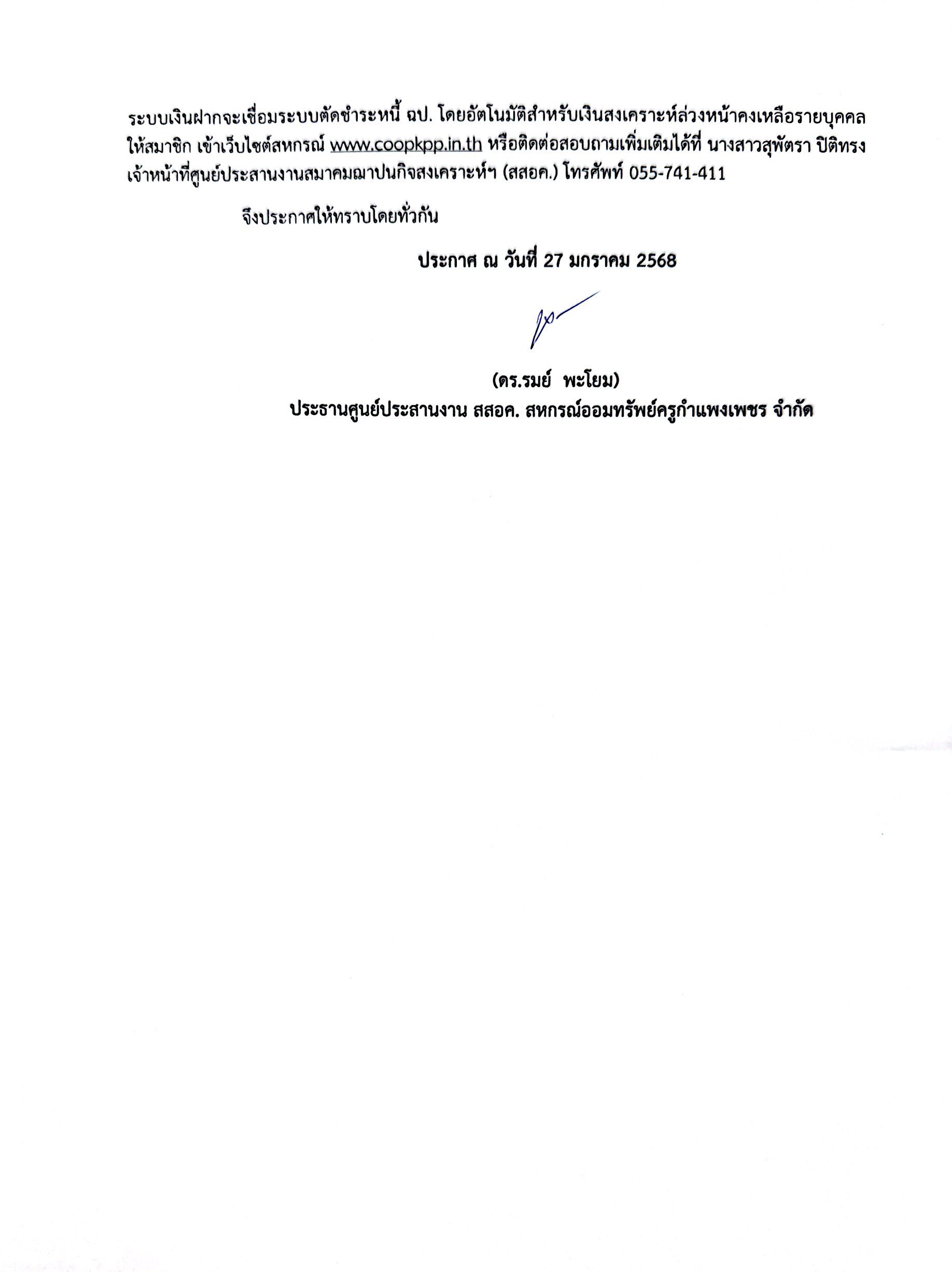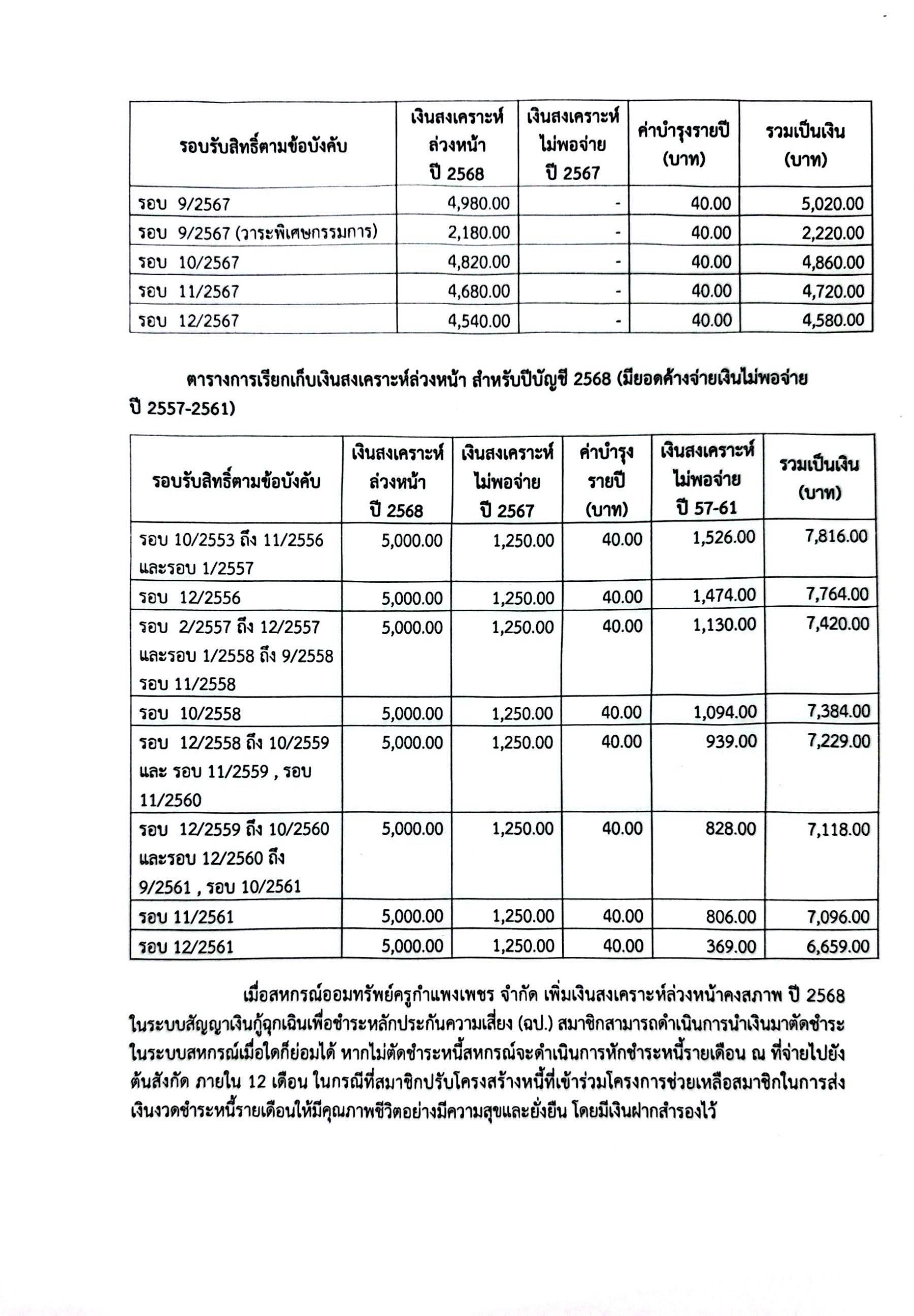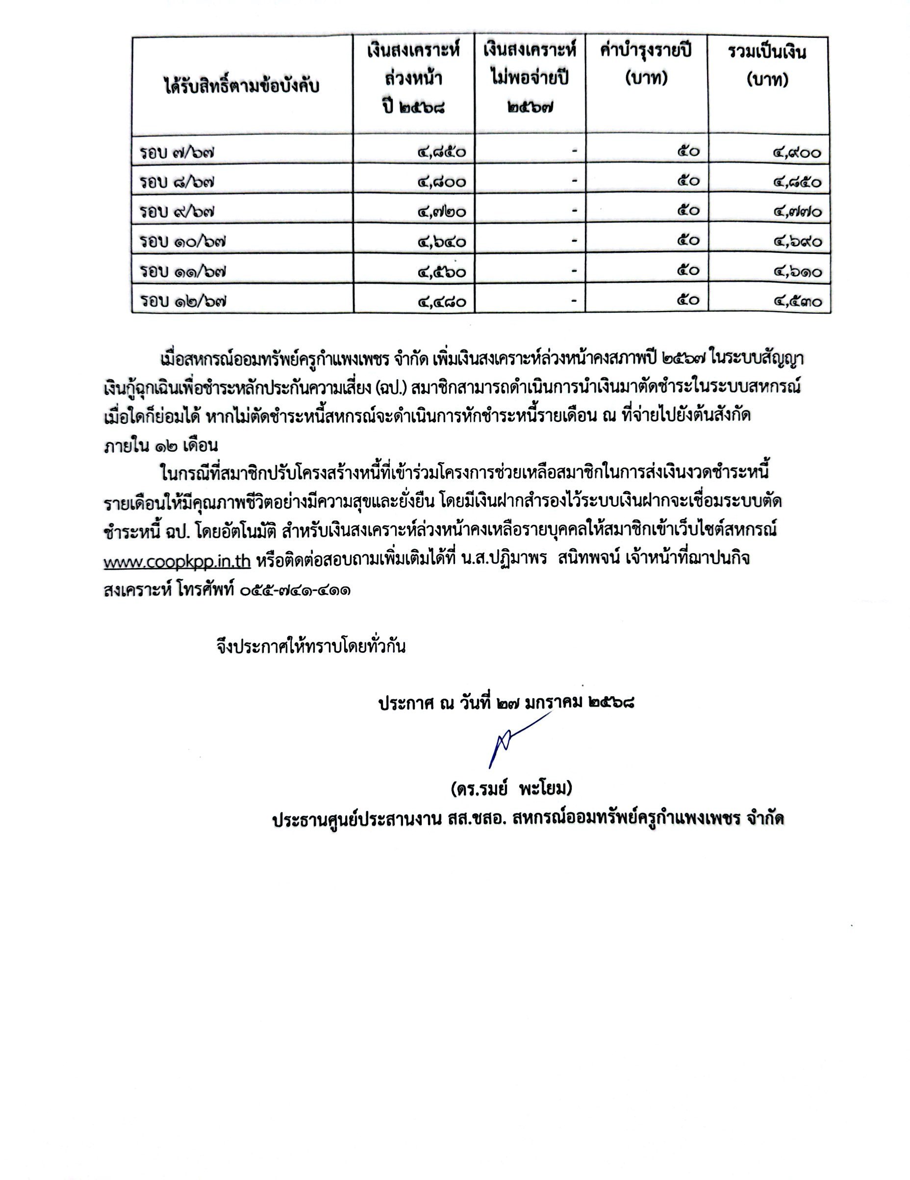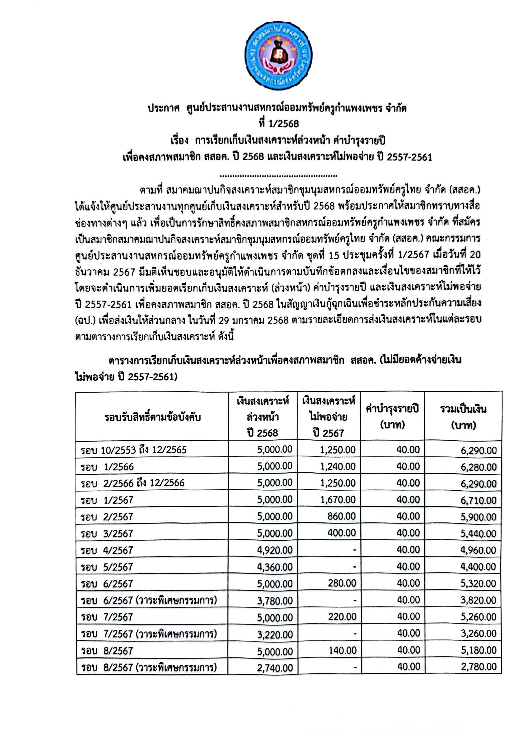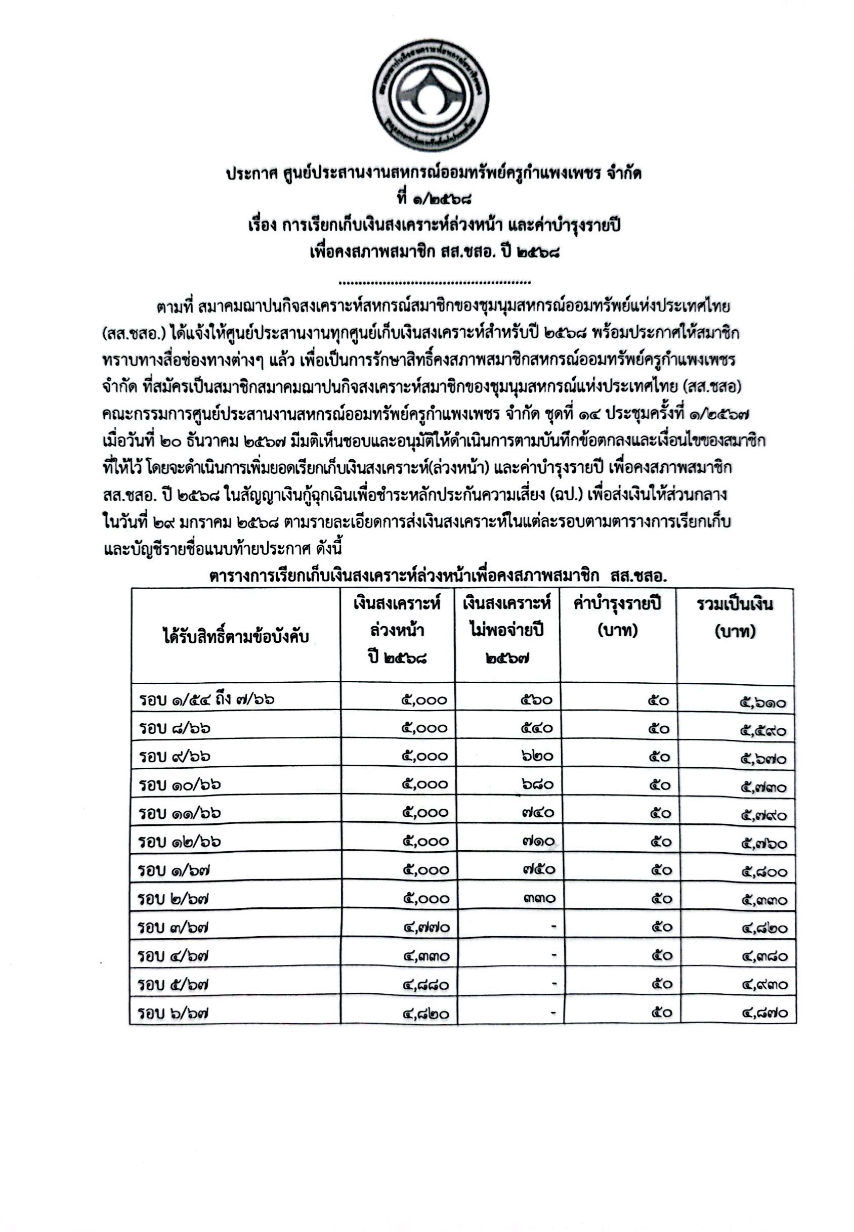 ประกาศ การเรียกเก็บเงินสงเคราะห์ล่วงหน้าและค่าบำรุงรายปี ประจำปี 2568 (สสอค.-สส.ชสอ.)