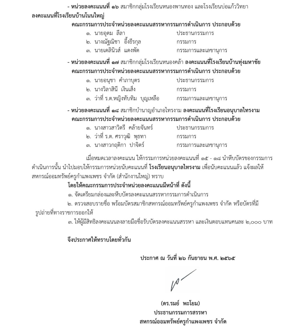 ประกาศที่ 37/2565 เรื่อง แต่งตั้งคณะกรรมการประจำหน่วยลงคะแนนสรรหากรรมการดำเนินการ ชุดที่ 65