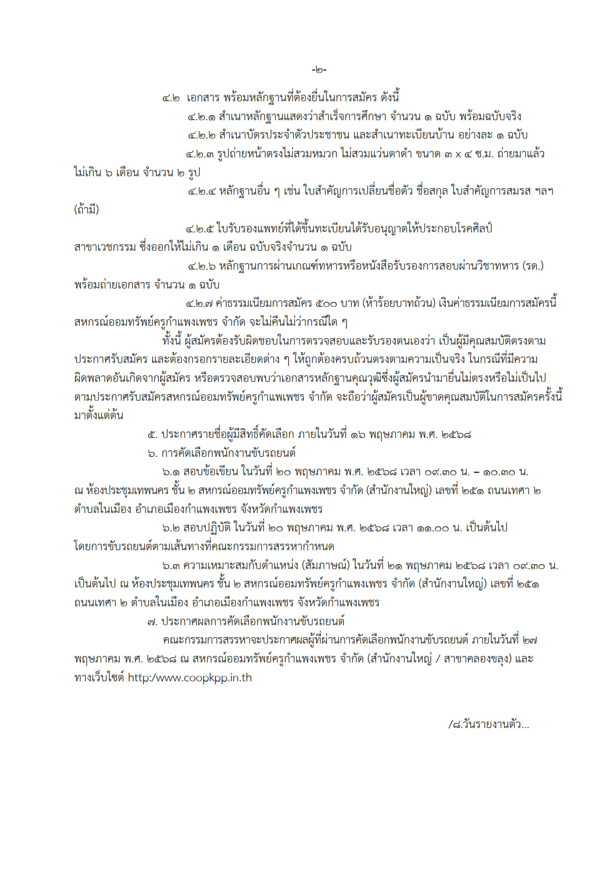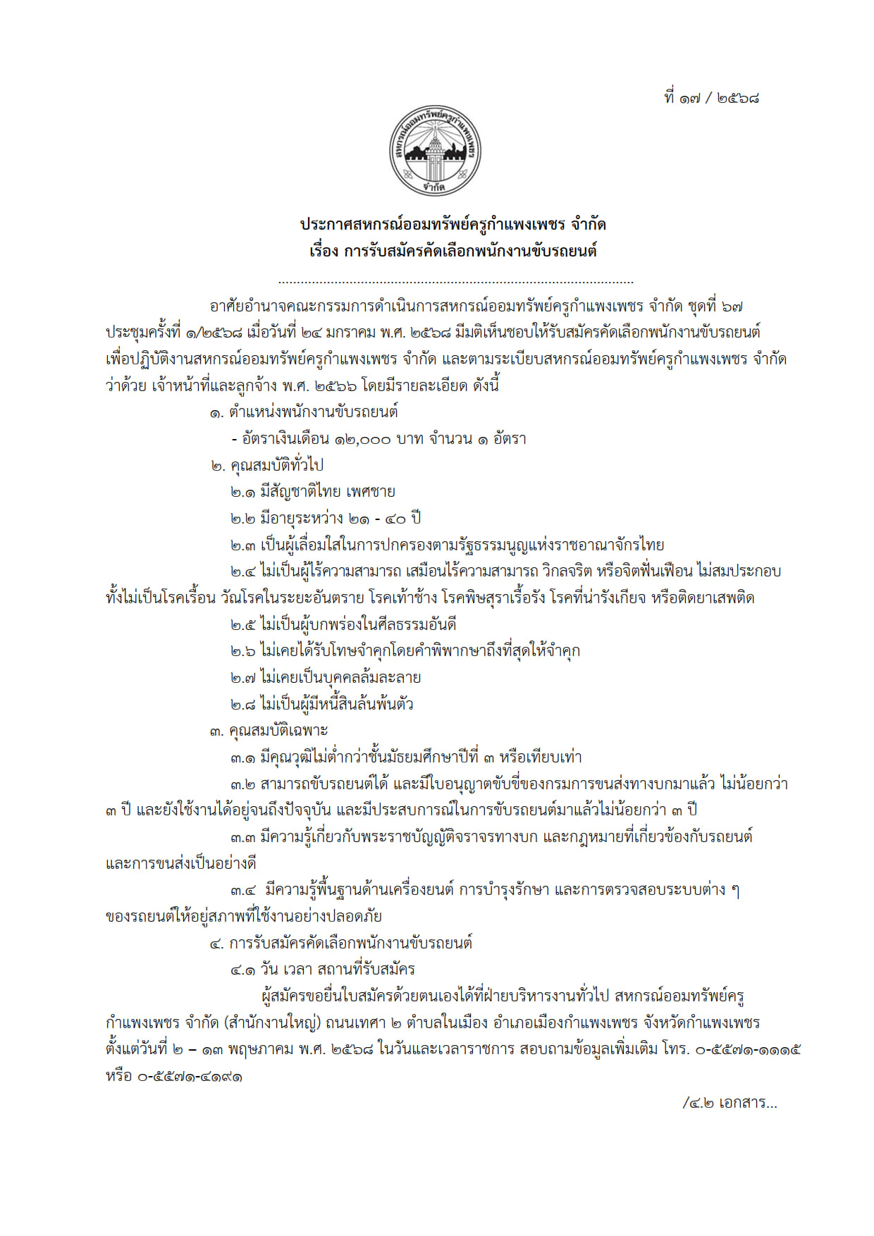 ประกาศ การรับสมัครคัดเลือกพนักงานขับรถยนต์