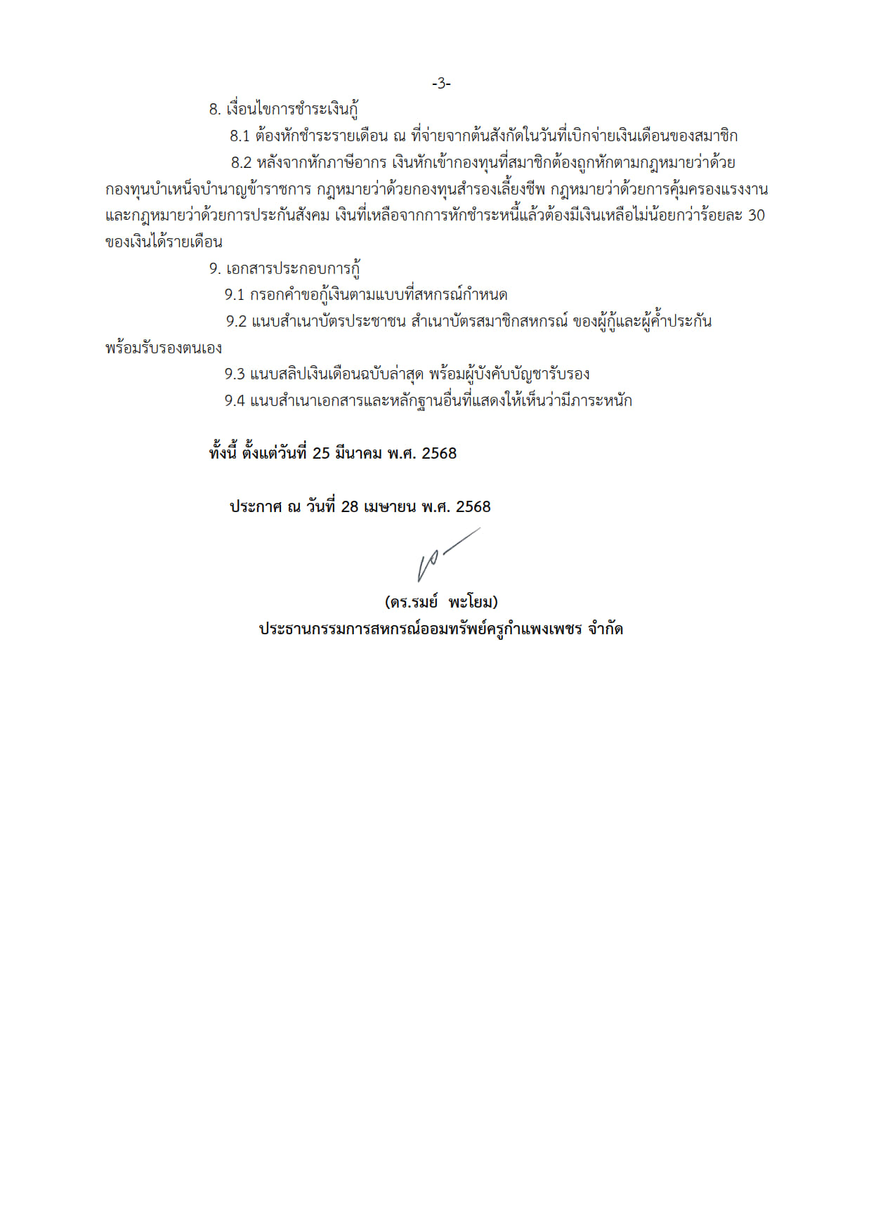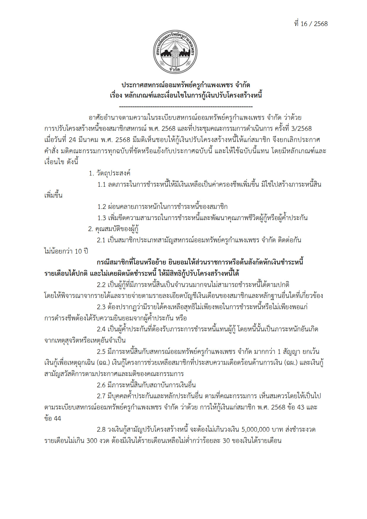 ประกาศ หลักเกณฑ์และเงือนไขการปรับโครงสร้างหนี้