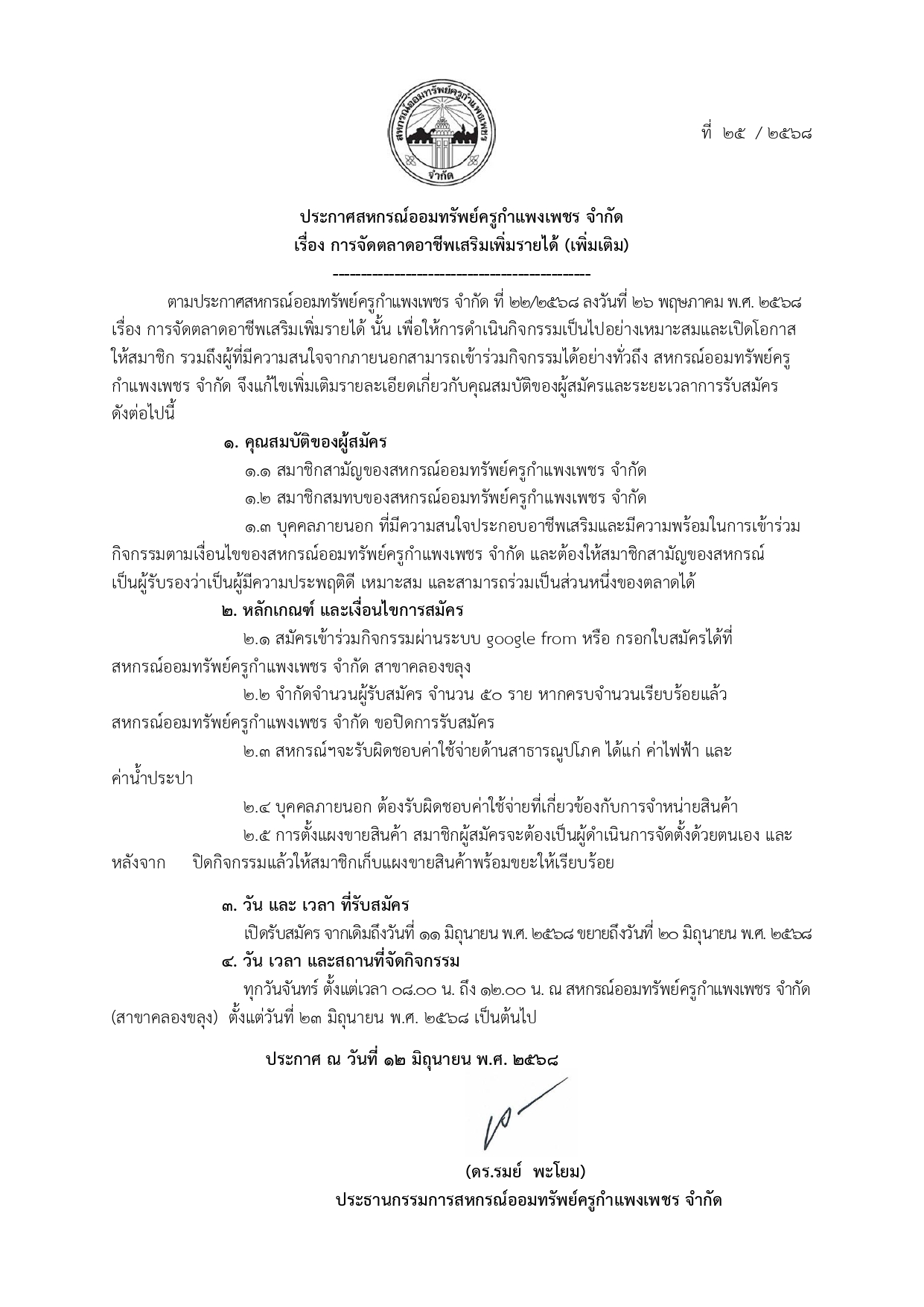 ประกาศ การจัดตลาดอาชีพเสริมเพิ่มรายได้ (เพิ่มเติม)
