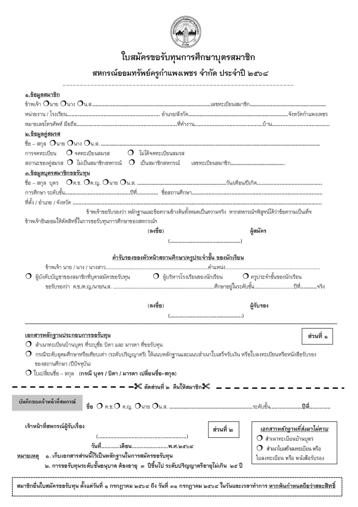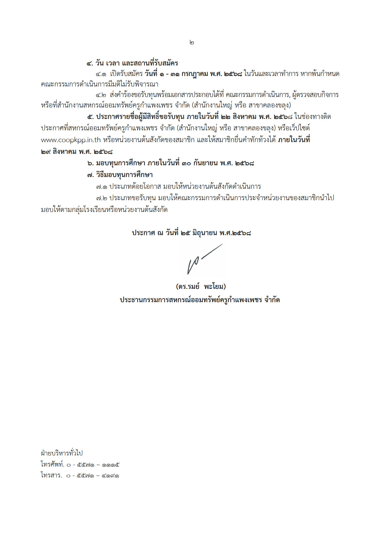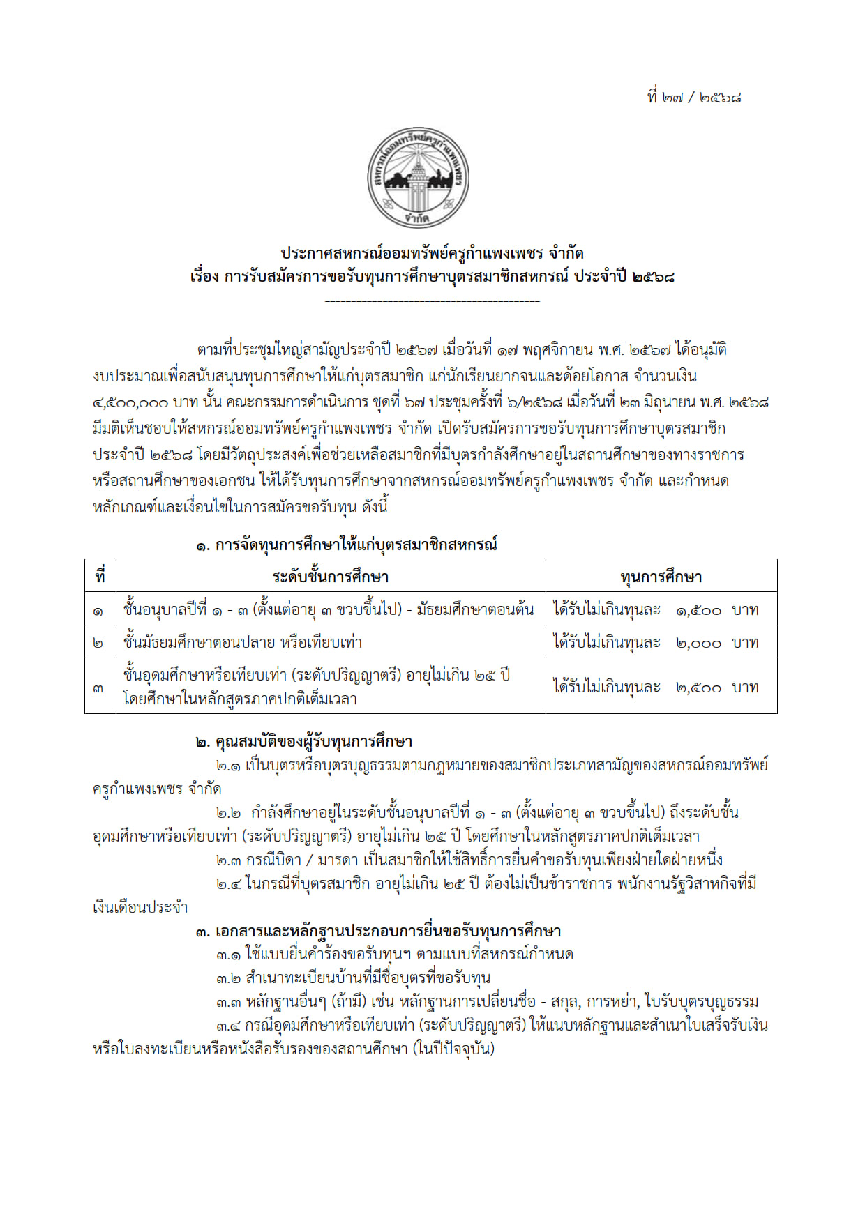 ประกาศ การรับสมัครการขอรับทุนการศึกษาบุตรสมาชิกสหกรณ์ ประจำปี 2568