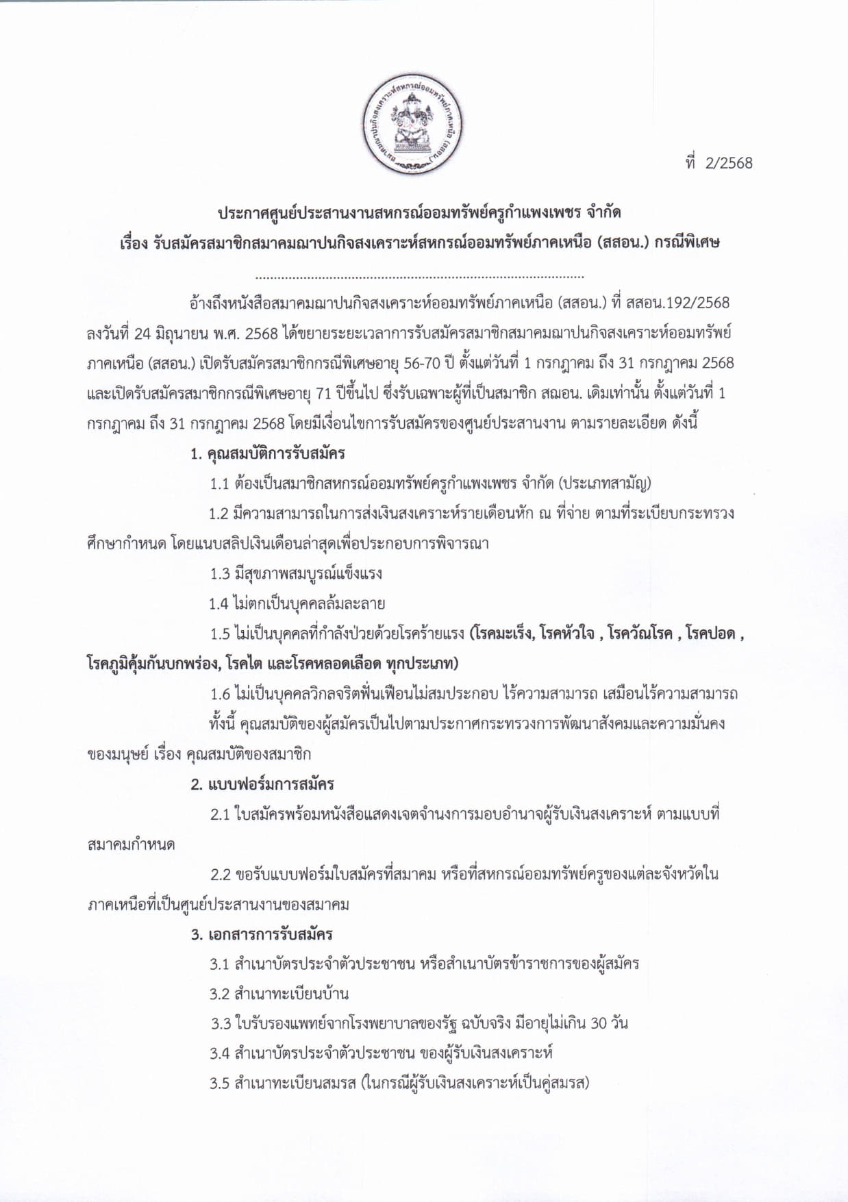ประกาศ รับสมัครสมาชิกกรณีพิเศษ (สสอน.)