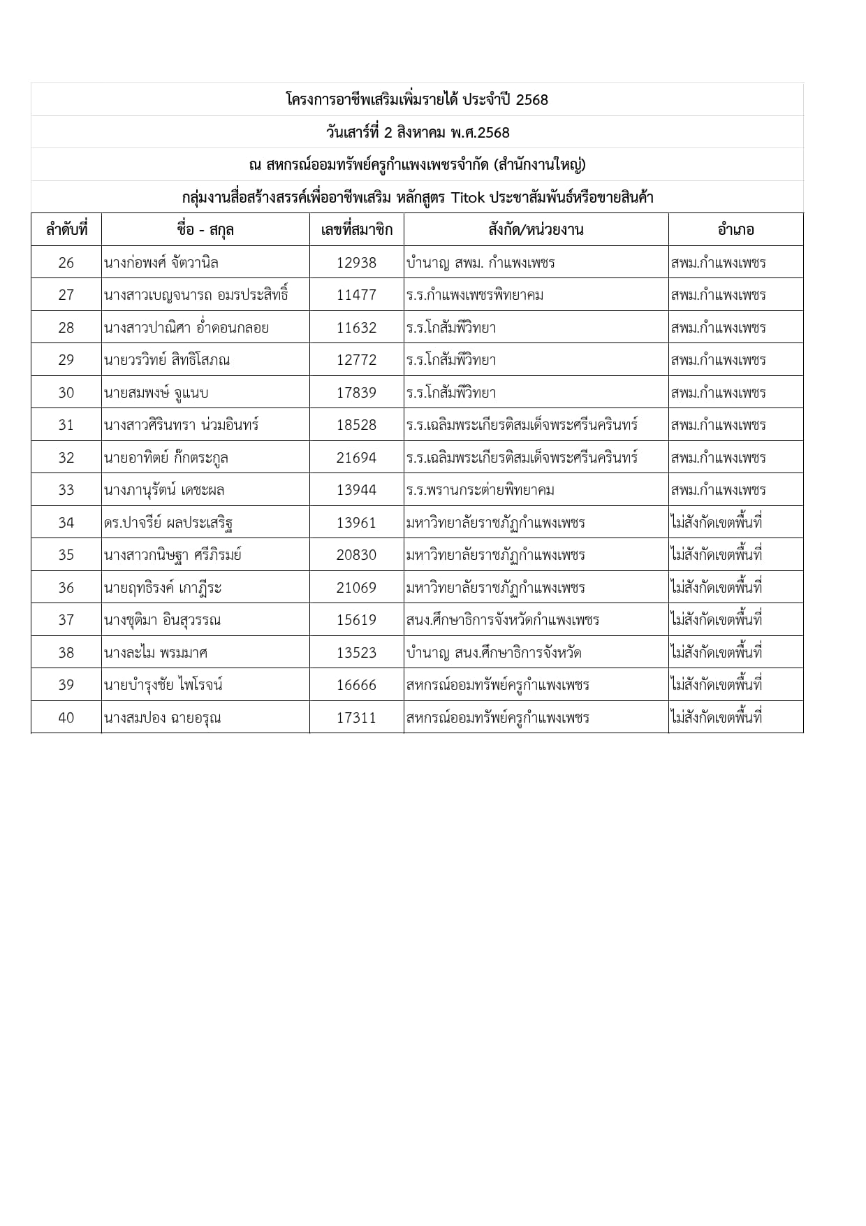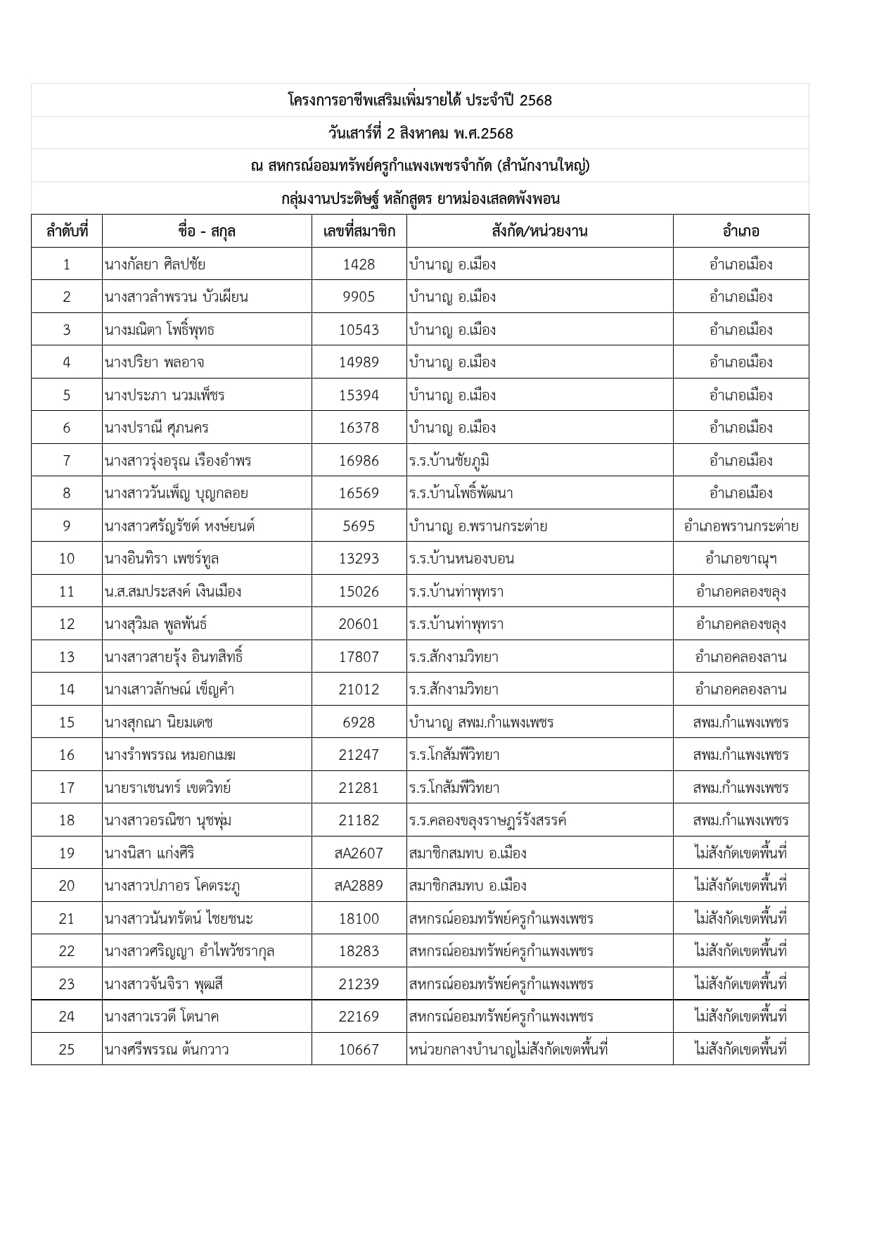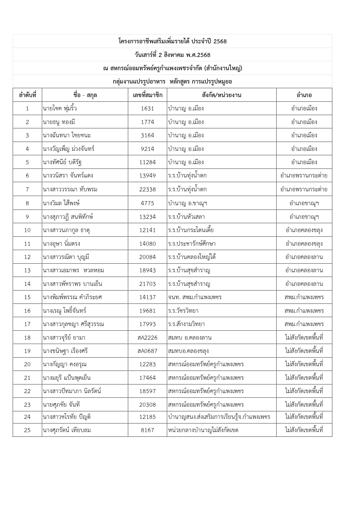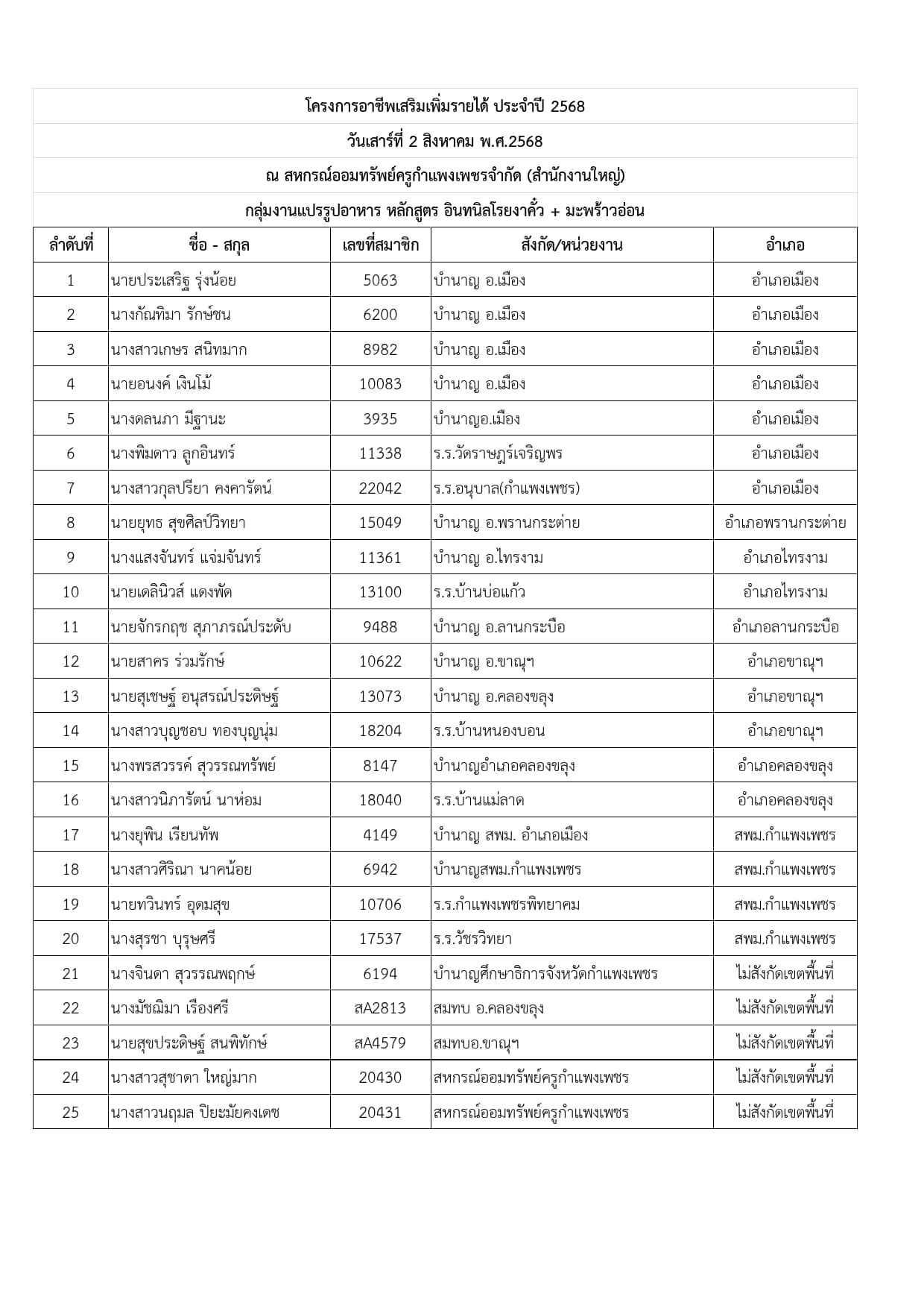 ประกาศ รายชื่อผู้เข้าร่วมโครงการอาชีพเสริมเพิ่มรายได้ ประจำปี 2568