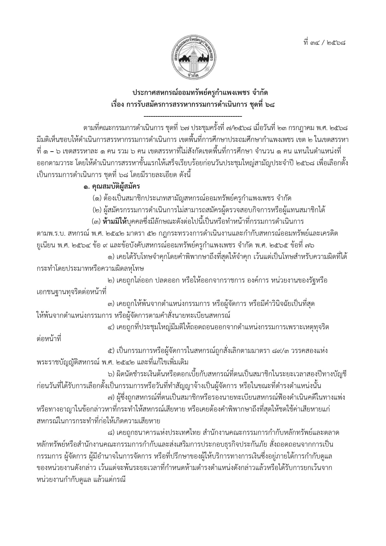 ประกาศ การรับสมัครการสรรหากรรมการดำเนินการ ชุดที่ 68
