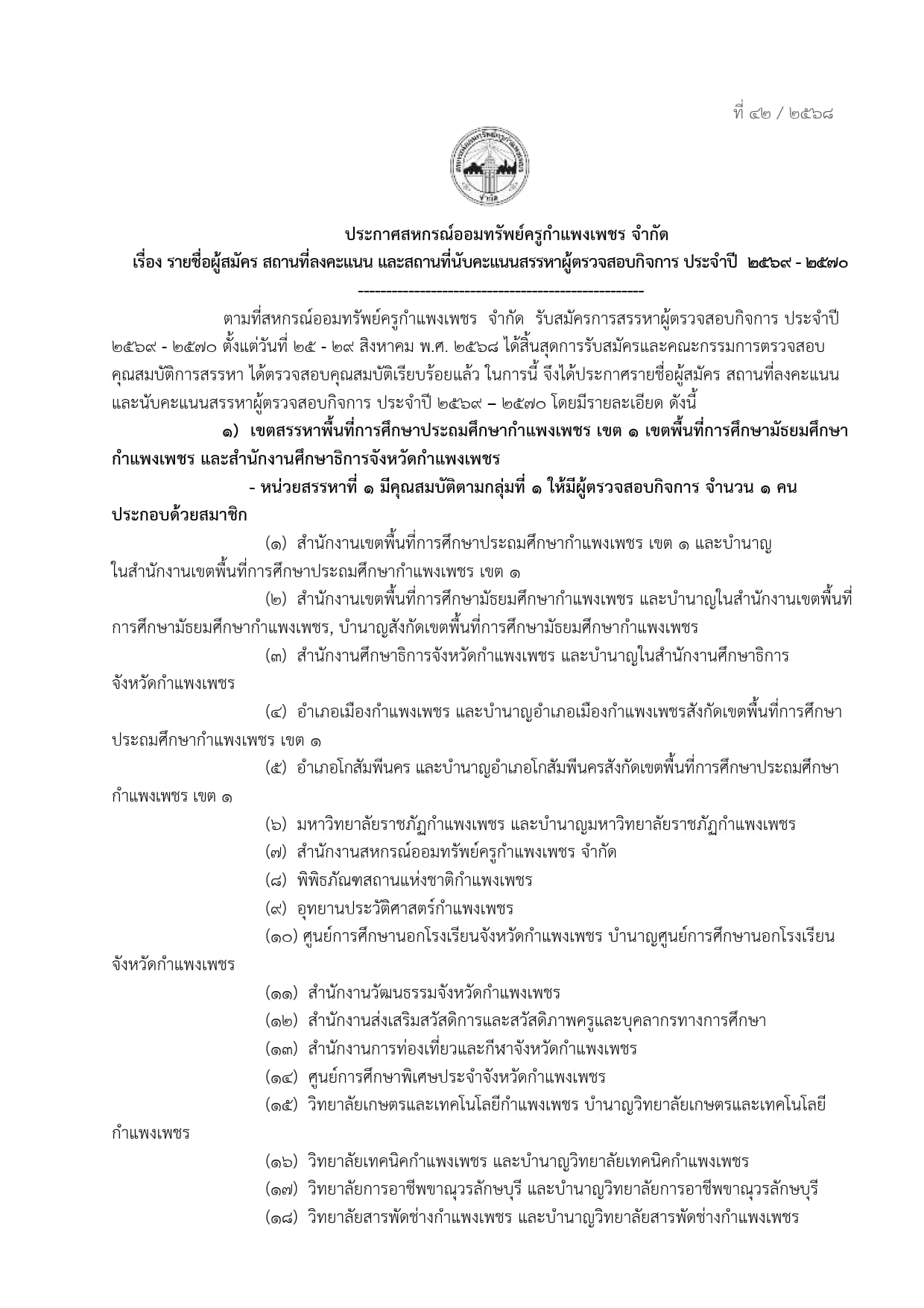 ประกาศ รายชื่อผู้สมัครผู้ตรวจสอบกิจการ ประจำปี 2569-2570