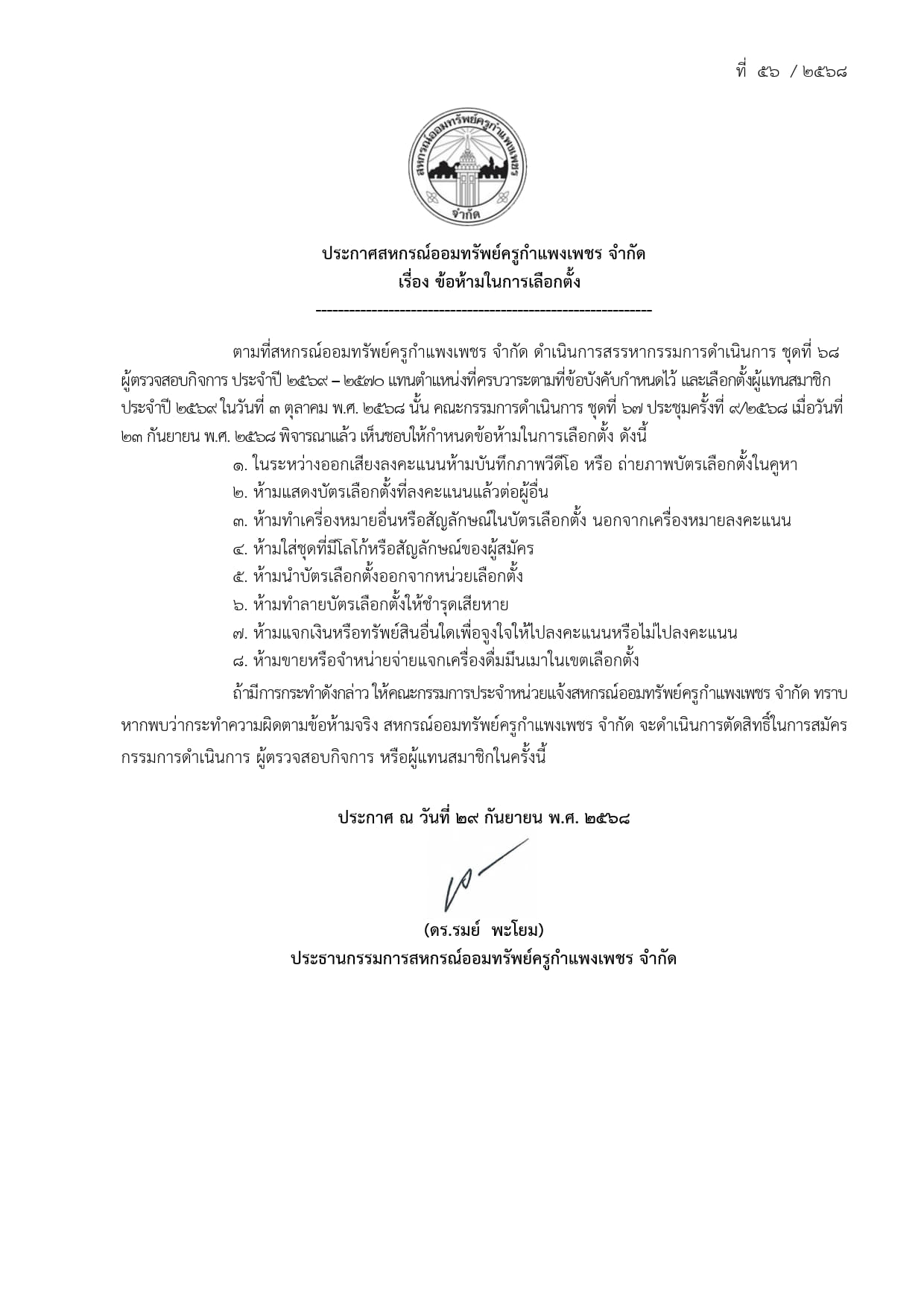 ประกาศ ข้อห้ามในการเลือกตั้ง
