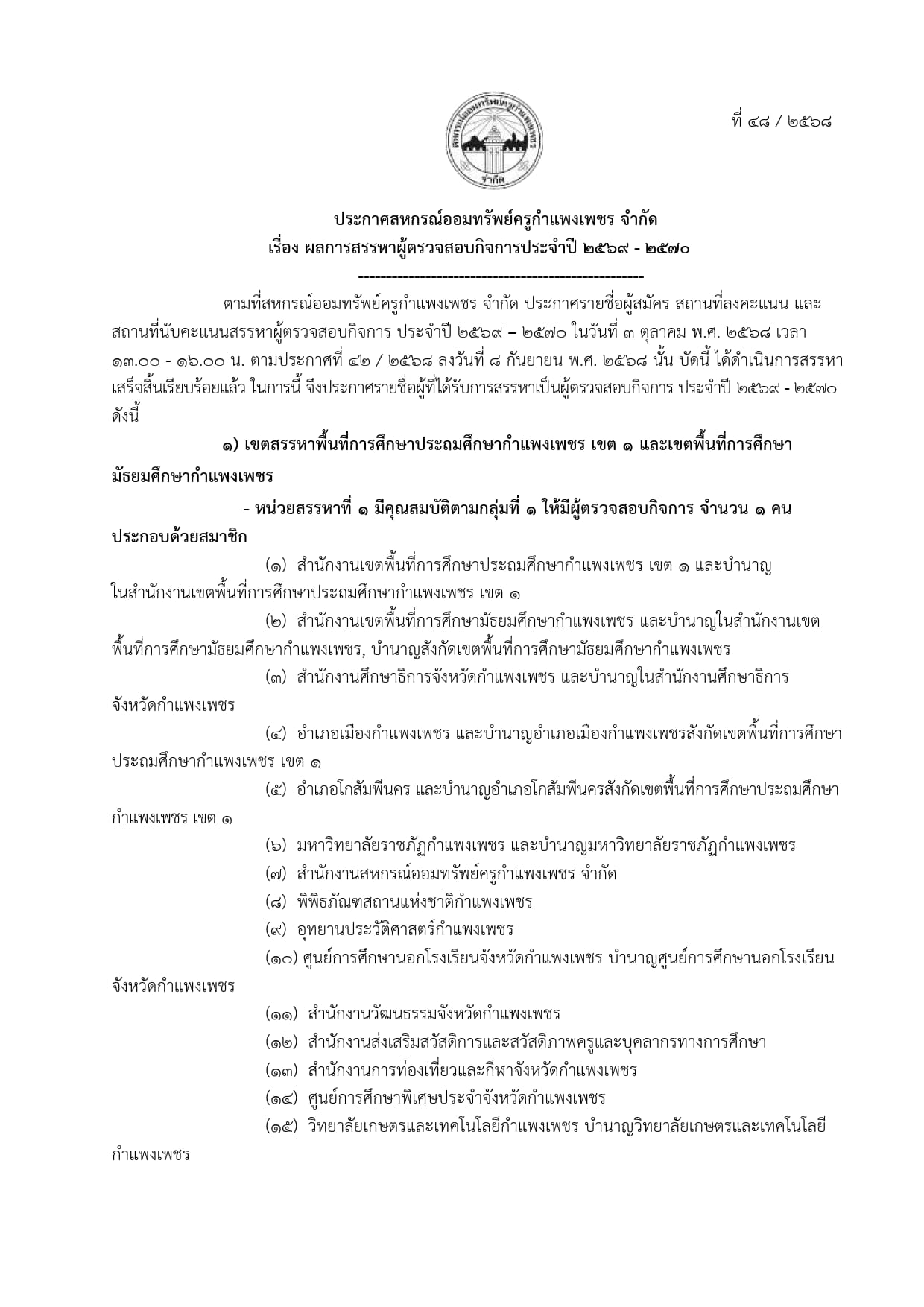 ประกาศ ผลการสรรหาผู้ตรวจสอบกิจการประจำปี 2569 - 2570