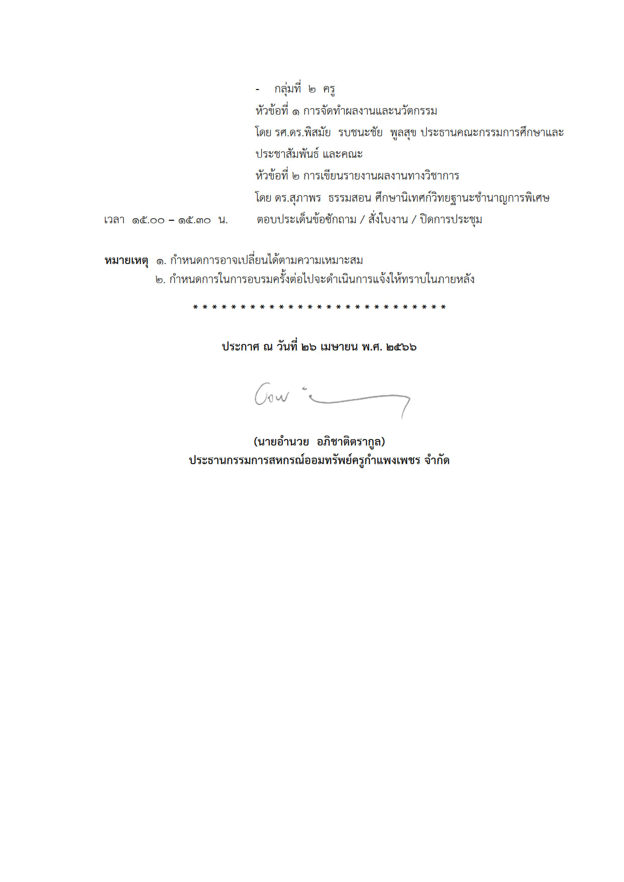 ประกาศ รายชื่อผู้เข้าร่วมอบรมทำผลงานทางวิชาการ และกำหนดการ ปี 2566