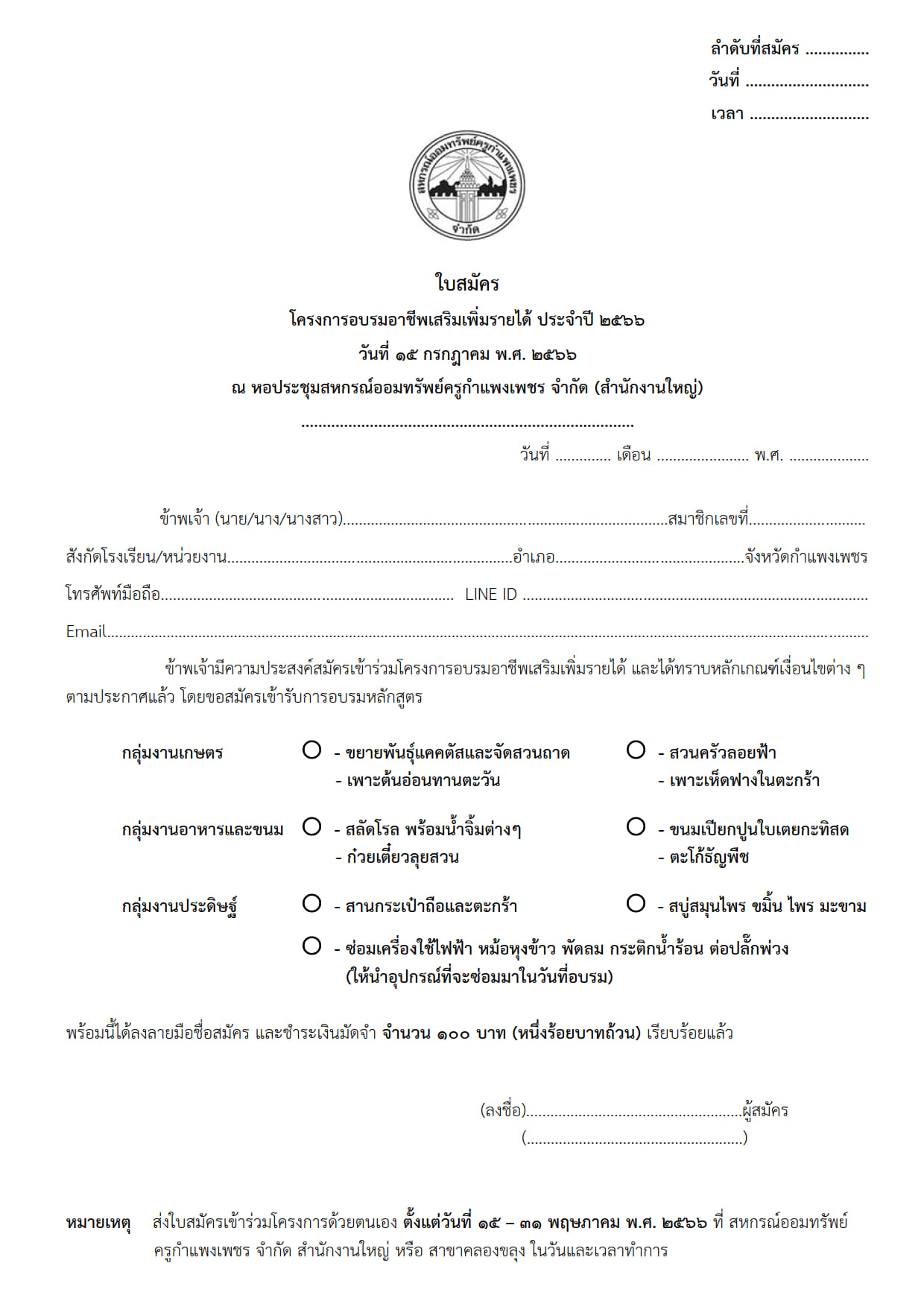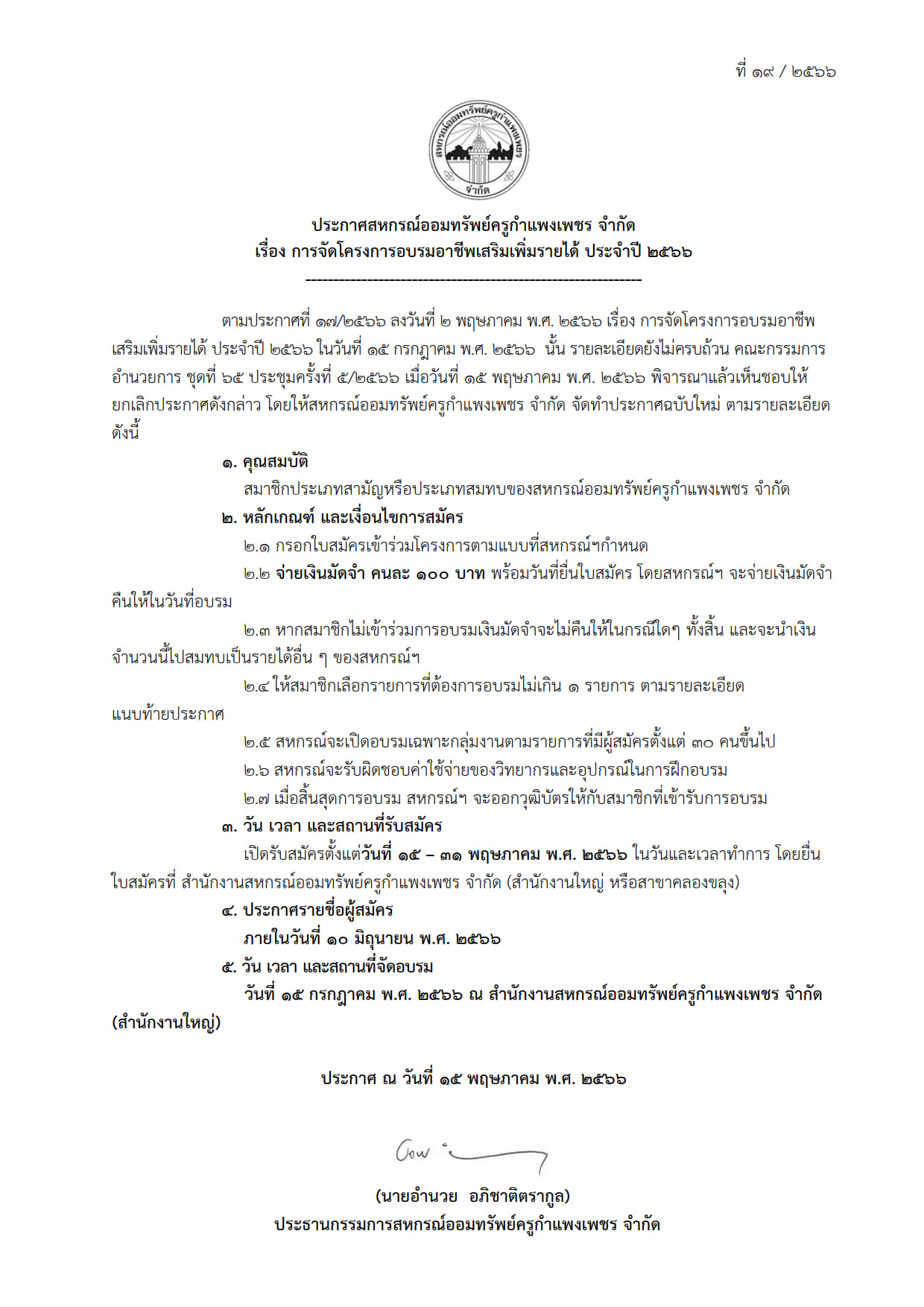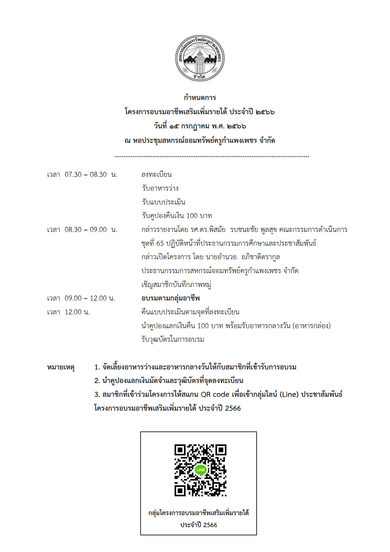 ประกาศ การจัดโครงการอบรมอาชีพเสริมเพิ่มรายได้ ประจำปี 2566