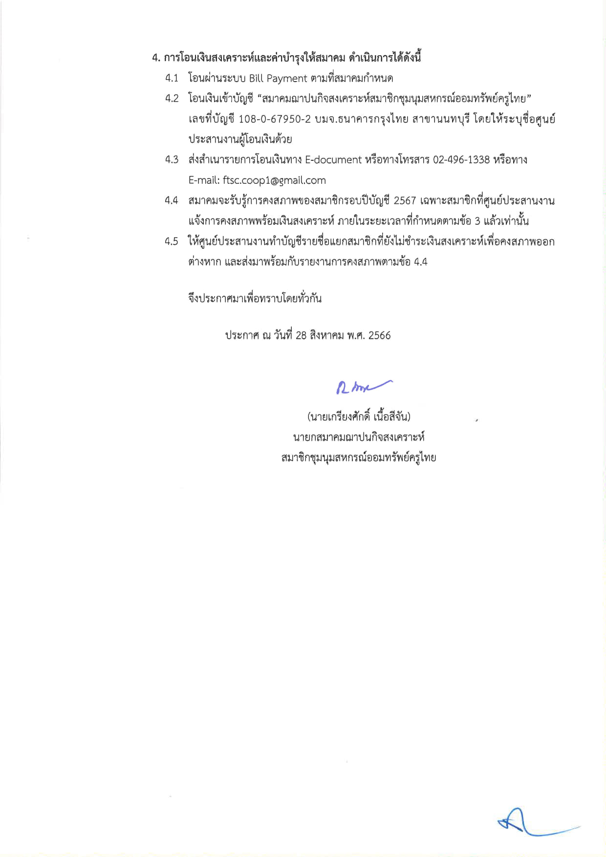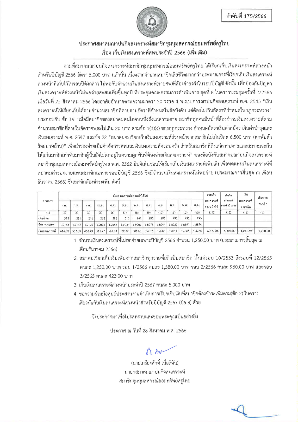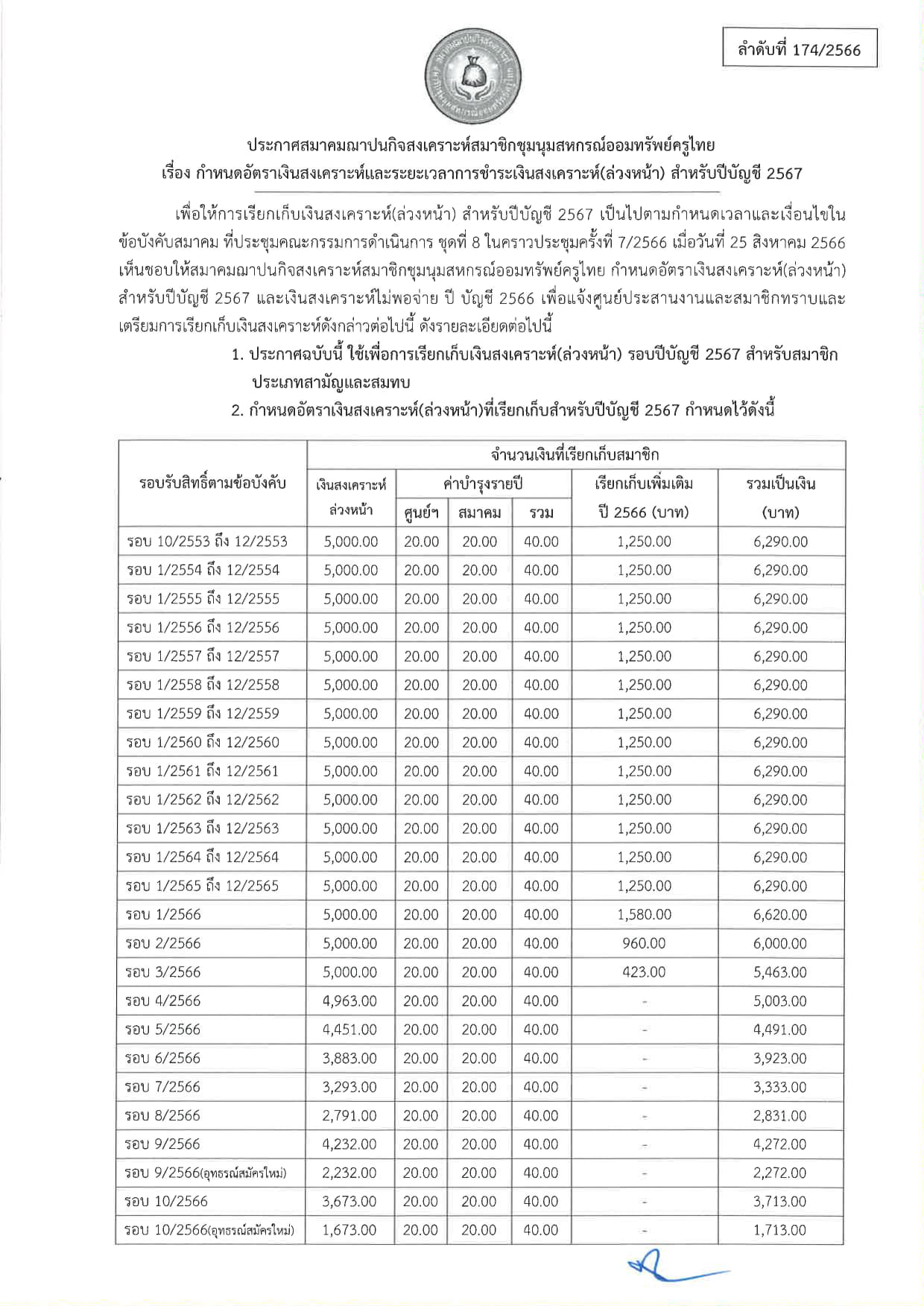 ประกาศ การเก็บเงินสงเคราะห์สำหรับปีบัญชี 2567 (สสอค.)