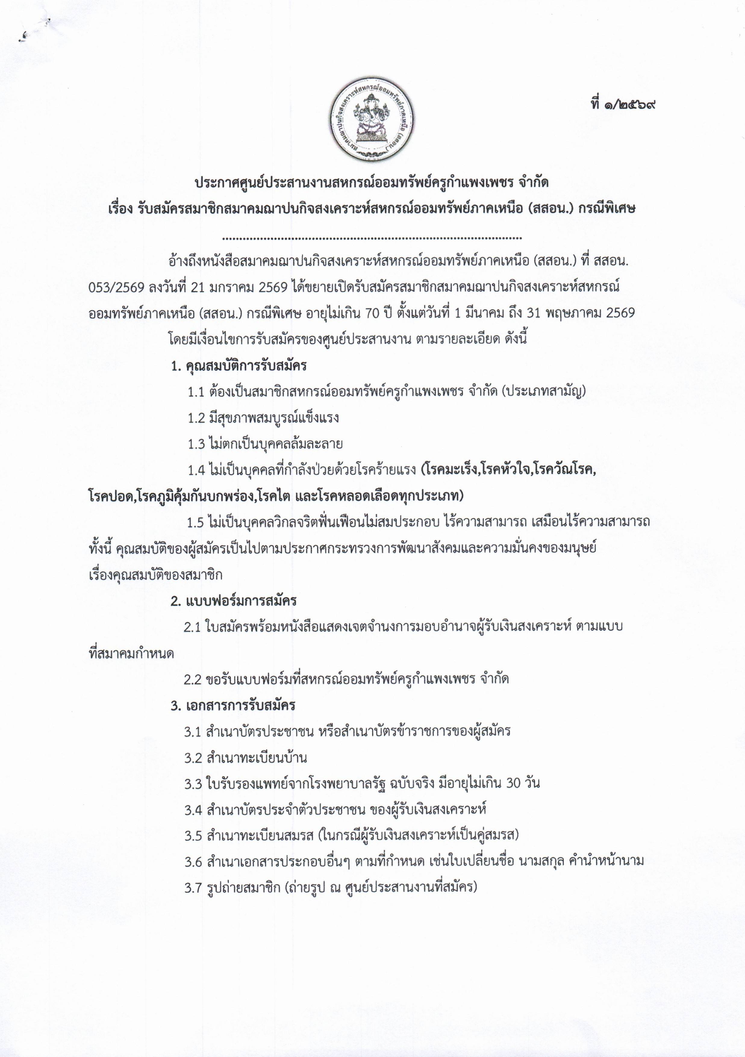 ประกาศ รับสมัครสมาชิกกรณีพิเศษ (สสอน.)